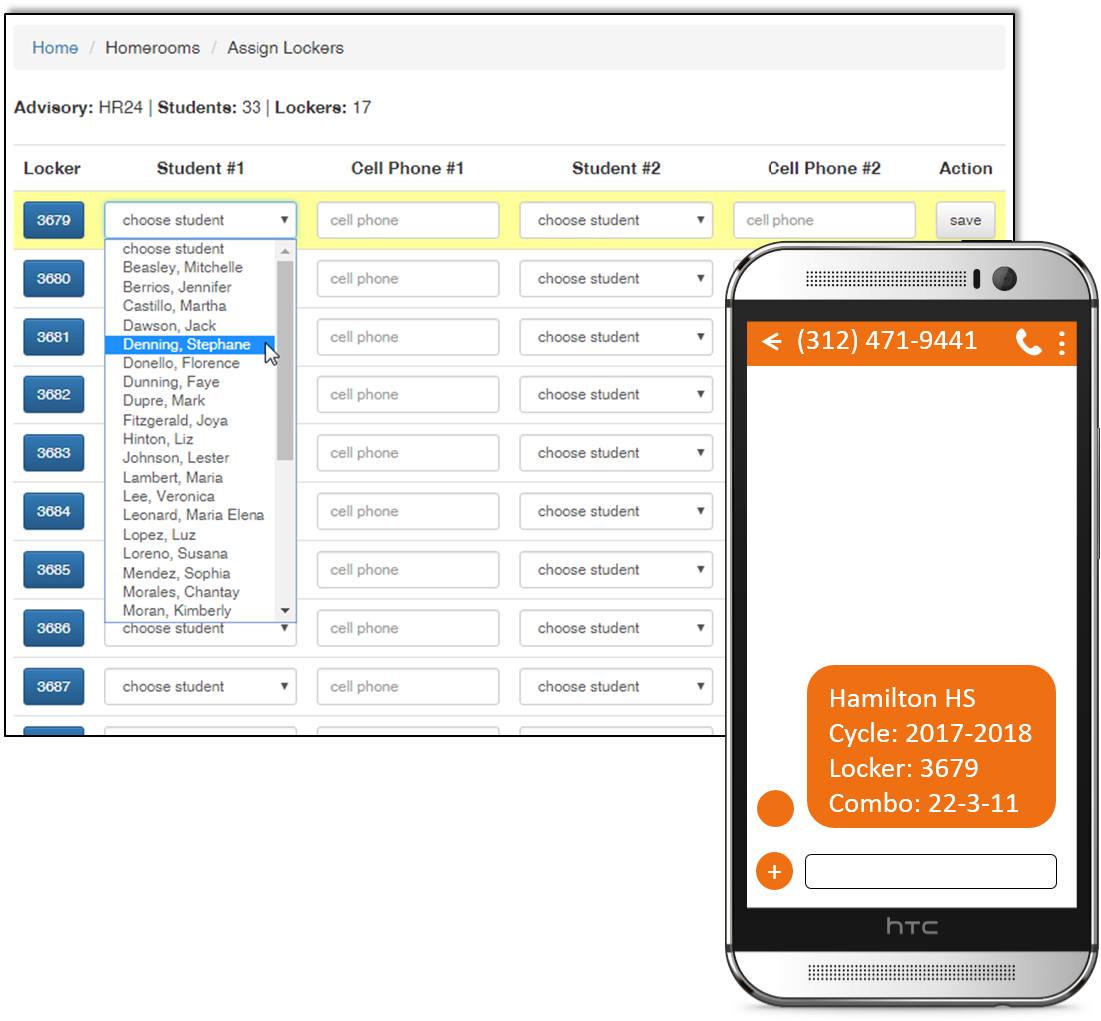 LockerPort assists a school in assigning student lockers during homeroom and sends the preset combination via text message to students.